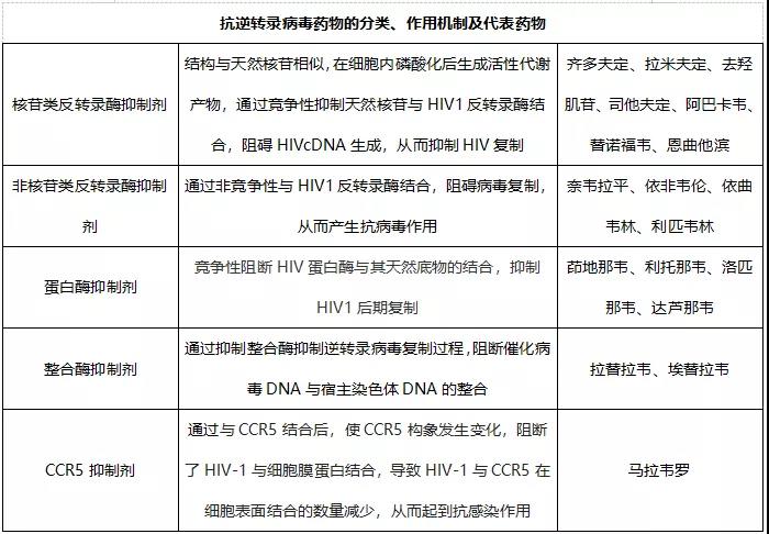 自1986年FDA批准全球首款抗逆转录病毒药物齐多夫定(AZT)以来,目前全球已经批准多款抗逆转录病毒单方药物和复合制剂。而抗逆转录病毒药物主要分为核苷类反转录酶抑制剂(NRTIs)、非核苷类反转录酶抑制剂(NNRTIs)、蛋白酶抑制剂(PIs)、整合酶抑制剂(INSTIs)、膜融合抑制剂(FIs)及CCR5抑制剂六大类。