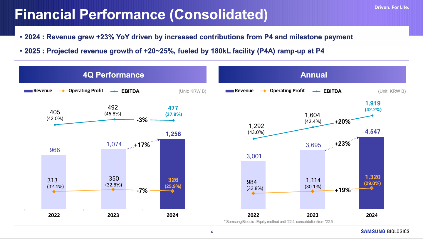 近日,全球合同开发和制造组织 (CDMO) 三星生物(KRX:207940.KS)公布了 2024第四季度和全年的财务业绩。