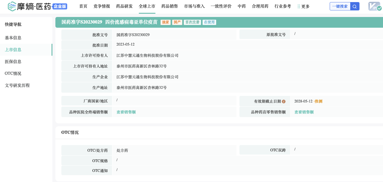 截图来源:摩熵医药数据库