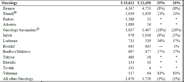 2024年辉瑞部分新药业绩构成