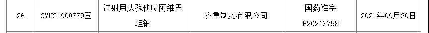 10月11日,NMPA官网发布一批药品批准证明文件,其中齐鲁制药的4类仿制药注射用头孢他啶阿维巴坦钠获批上市,视同通过一致性评价。这是该药在国内的首家报产+首仿上市。