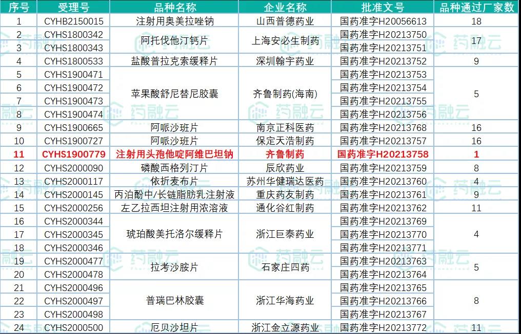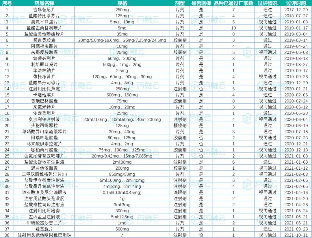 图片数据来源:药融云一致性评价数据库