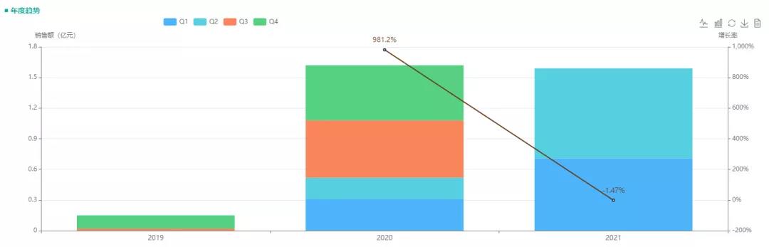 从2019年注射用头孢他啶阿维巴坦钠获得国家药品监督管理局批准,便在国内上市销售。根据药融云全国医院销售数据显示,2020年的销售额超1.5亿;2021年,该药品的前两个季度的销售额已超过1.5亿,全年销售额有望赶超2020年。
