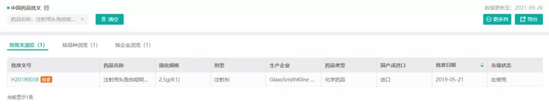 表3:“注射用头孢他啶阿维巴坦钠”的批文信息