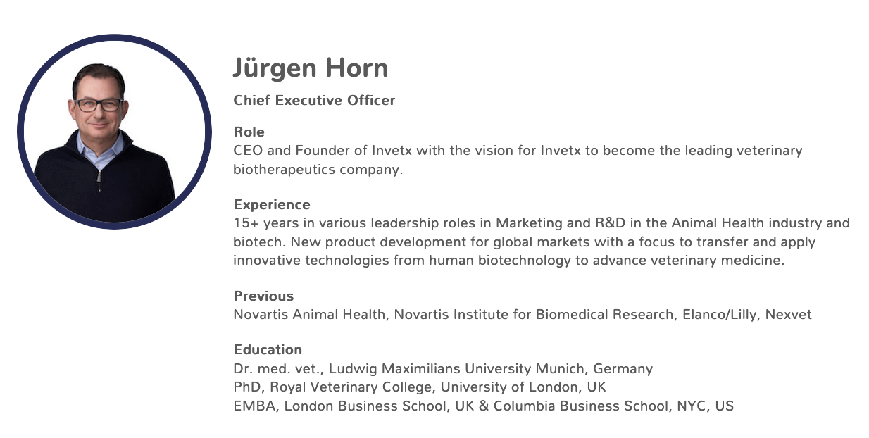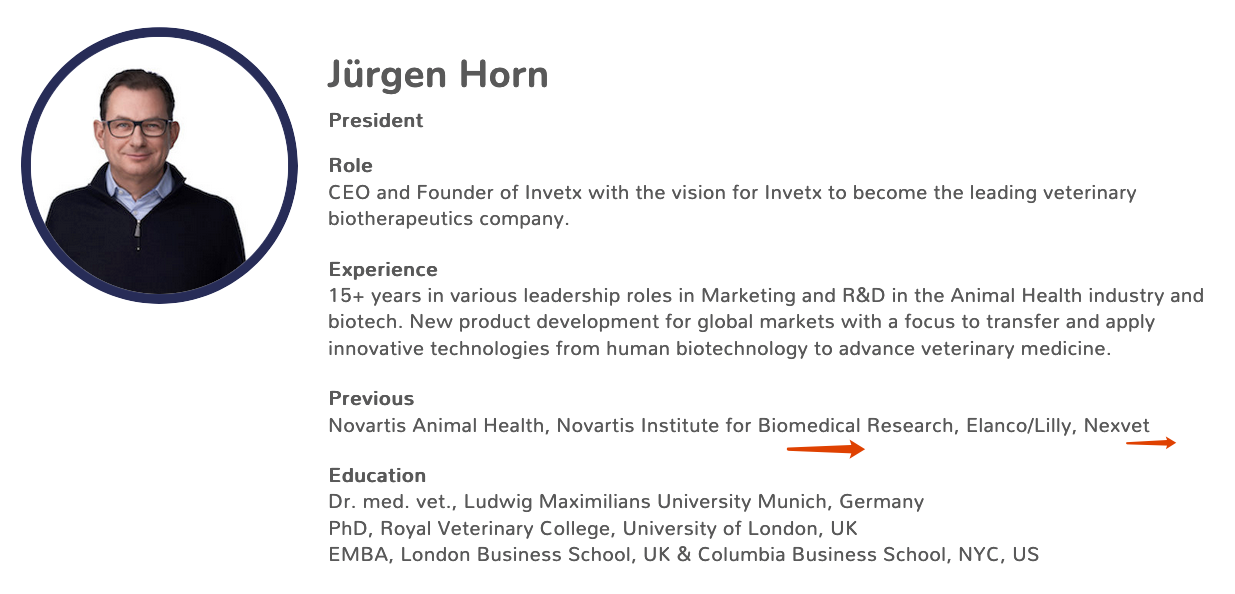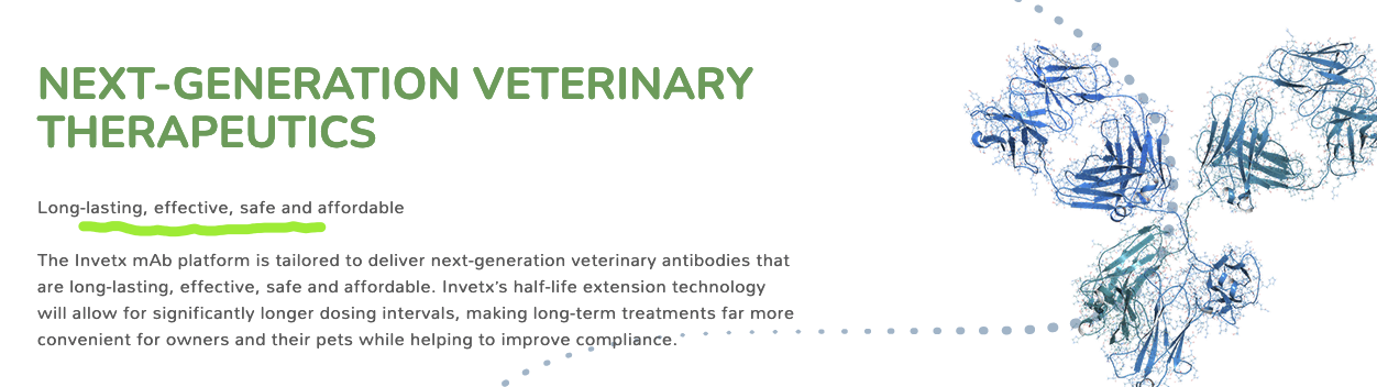Invetx最早由欧洲Anterra基金孵化。公司主要开发针对伴侣动物慢性和严重疾病的半衰期优化的长效单抗(mAb),如猫科犬科动物的特应性皮炎和骨关节炎(NGF抗体)等。此前的投资者包括:F-Prime、NovoHoldings、GV(Google Ventures)、Casdin、Eight Roads、Tekla等等。2020年完成2550 万美元的 A 轮融资。