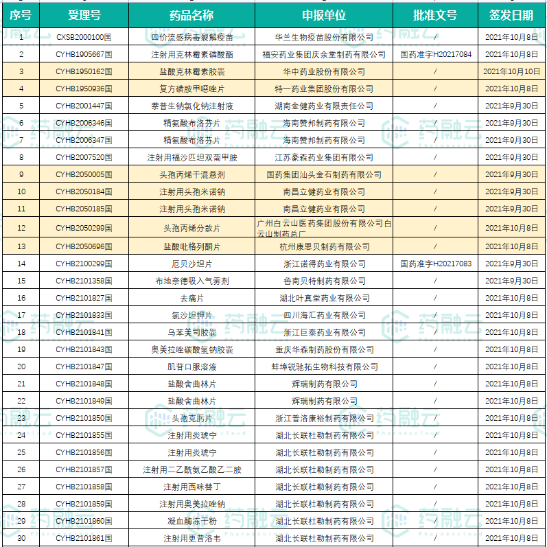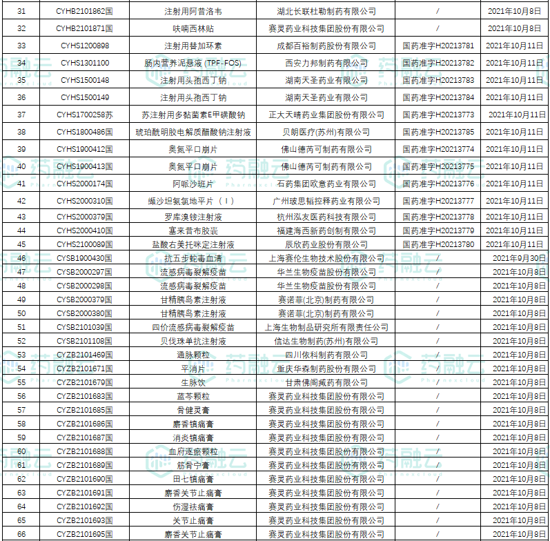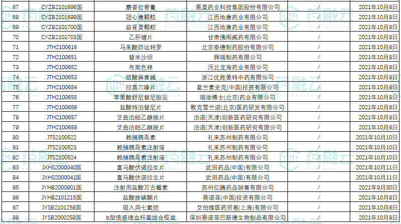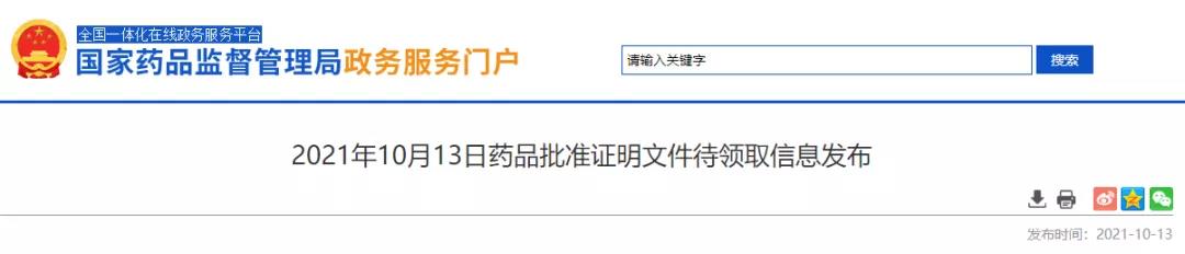 NMPA发布2021年10月13日药品批准证明文件待领取信息,88个受理号获批,其中7个一致性评价受理号,另外多个仿制药新申报获批/视同通过一致性评价: