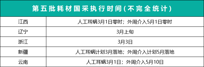 江西、辽宁、浙江、新疆、云南等地已率先披露了第五批耗材国采的具体执行时间,预计其他地区也将迅速跟进。