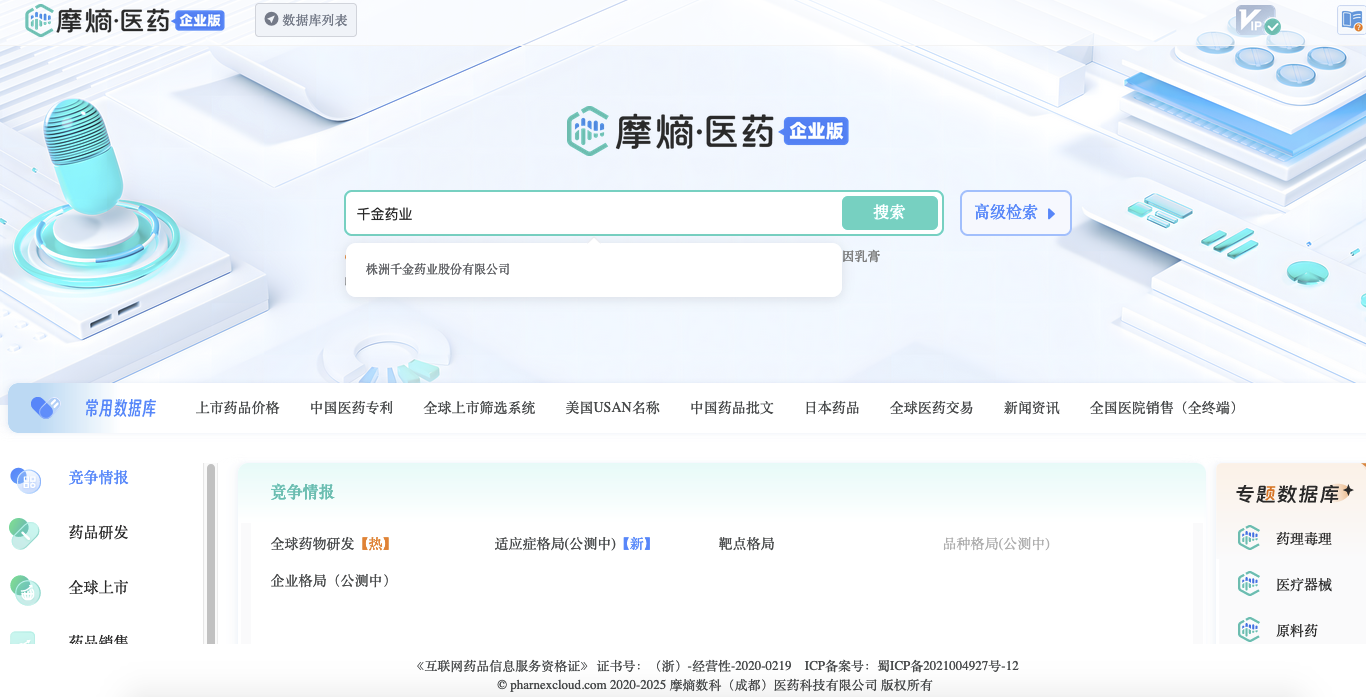 截图来源:摩熵医药数据库