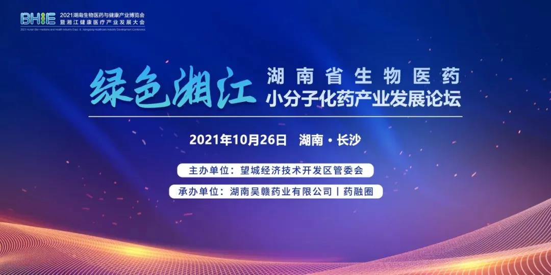 药融圈受大会组委会、望城经济技术开发区管委会、湖南吴赣药业有限公司委托,将于2021年10月26日下午共同举办大会分论坛《“绿色湘江”湖南省生物医药小分子化药产业发展论坛》,论坛将邀请医药界湘军代表企业家和省外企业家共同探讨原料药制剂垂直产业链打造以及原料药产业发展共性立项问题,并借此良机探讨合作对接落地。