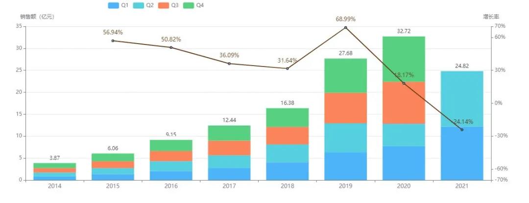 乙酰半胱氨酸自上市以来,在全国医院的销售额始终以超30%增长率稳定上涨,于2017年突破10亿大关,2020年销售额达到32亿元,今年上半年增长势头更盛,销售额已接近去年全年销售额的9成,同比增长93%,今年销售额有望突破50亿元。
