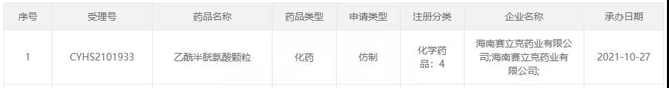 据CDE官网,今日CDE承办了海南赛立克药业递交的乙酰半胱氨酸颗粒上市申请,注册类型为4类仿制药。据了解,乙酰半胱氨酸相关制剂去年销售额超30亿元,国内生产企业十余家,还有多家企业以新注册分类申报上市,但尚无企业过评。
