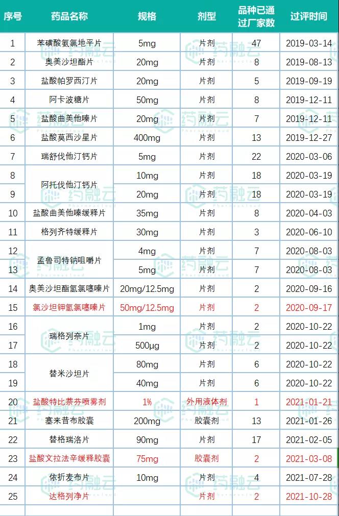 视同通过一致性评价品种(标红的为首家)