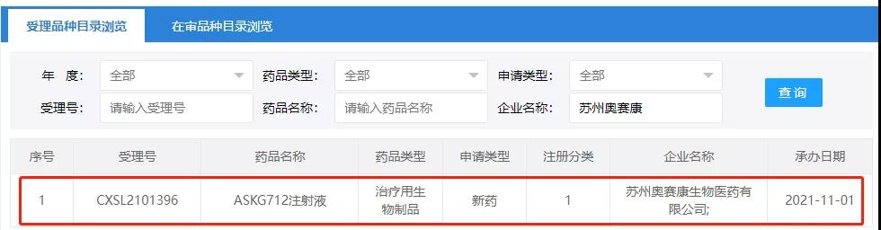 近日,北京奥赛康药业股份有限公司(以下简称“公司”)的下属子公司苏州奥赛康生物医药有限公司(以下简称“子公司”)申报的 ASKG712 注射液新药临床试验申请获得国家药品监督管理局(以下简称“药监局”)受理。相关情况如下: