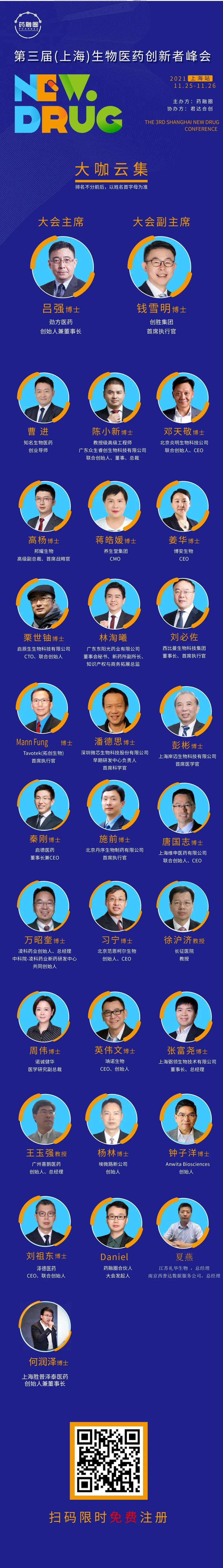 将于2021年11月25-26日于上海召开的第三届(上海)生物医药创新者峰会将给予行业和参与者们一些答案。本次峰会由药融圈策划组织,旨在为生物医药上下游搭建一个交流趋势及创新的平台,拟邀请50+位生物医药领域研究、开发及运营与BD/投资方面的实战专家亲临现场,将与千余位与会嘉宾共论趋势,技术及经验。(第一波嘉宾已经就位,后续嘉宾正在确定中;潜力医药企业展示环节,继续筛选中,欢迎主动联系报名)