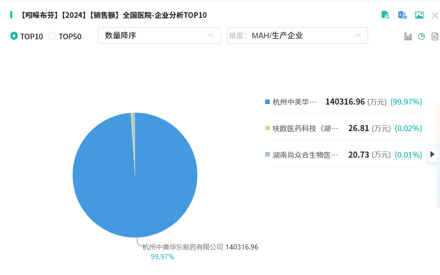 截图来源:摩熵医药全国医院销售数据库
