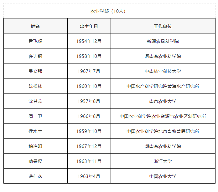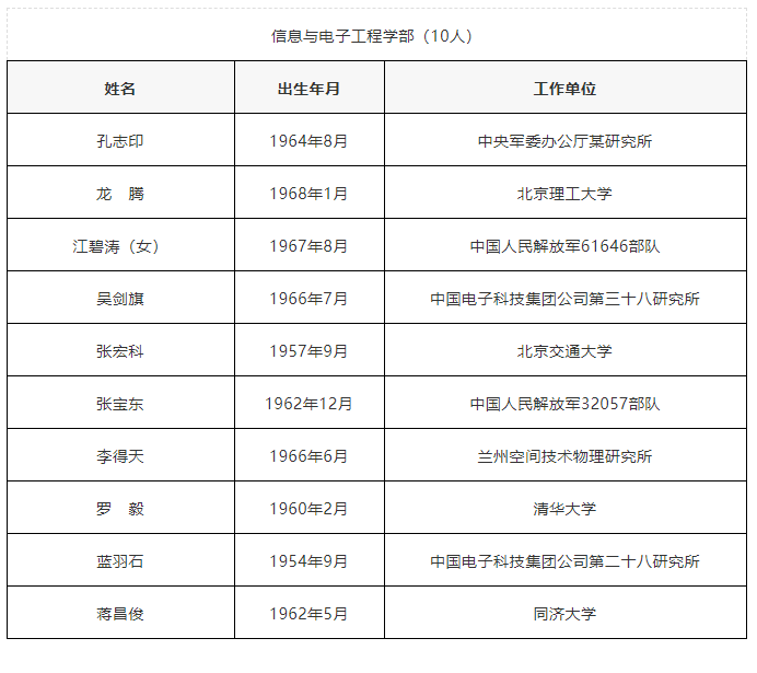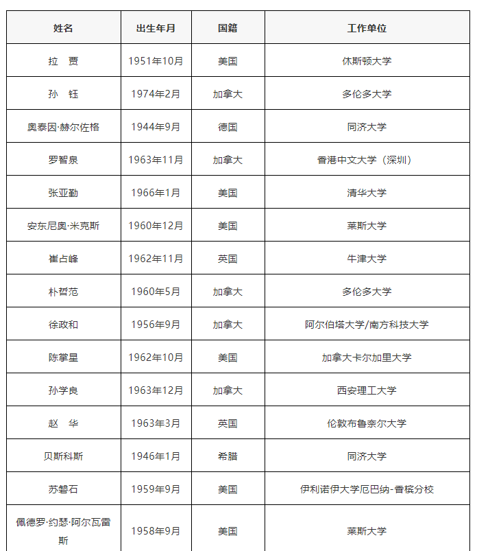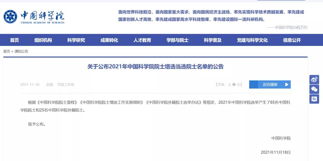 关于公布2021年中国科学院院士增选当选院士名单的公告