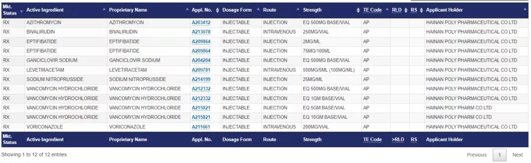 早在2019年6月,普利旗下的注射用盐酸万古霉素 500mg 和 1g 就获得美国食品药品监督管理局(FDA)签发的批准通知(申请号:ANDA212332),并于 2020 年 7 月获得加拿大卫生部签发的上市许可。