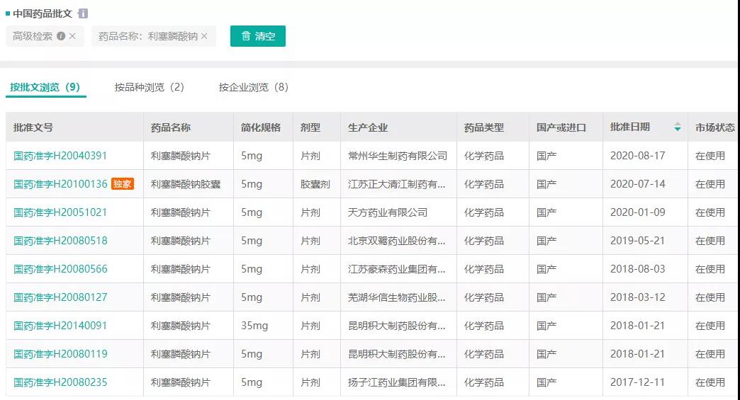 截图来源:药融云中国批文数据库