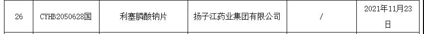 11月26日,国家药品监督管理局发布一批药品批准证明文件待领取信息,23个药品以补充申请方式通过一致性评价,17个药品以新注册方式分类获批并视同通过一致性评价,共涉及33家药企。其中,扬子江药业集团2品种获批:「利塞膦酸钠片」斩获首家过评,「盐酸纳布啡注射液」以新3类药品获批上市,视同过评。