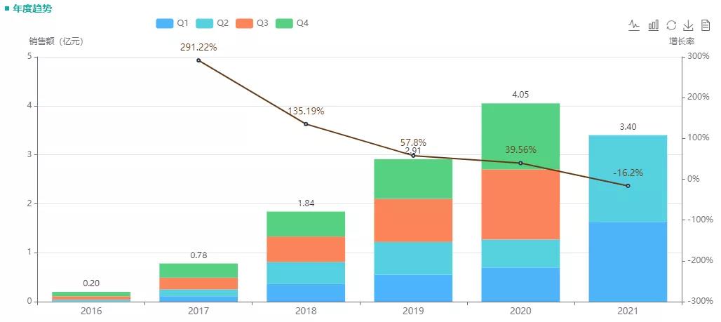 据药融云统计,盐酸纳布啡自上市以来,销售额一直呈跨越式增长,2020年院内销售额为4亿,2021H1同比增长167%,今年预估将达6亿元。