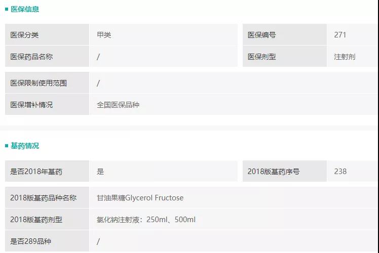 甘油果糖氯化钠注射液医保及基药情况