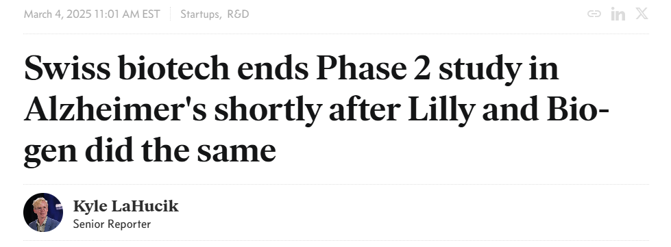 据瑞士联邦临床试验数据库显示,瑞士一家小型生物技术公司 Asceneuron 终止了一种用于治疗阿尔茨海默病的新型口服药物ASN51的中期试验。