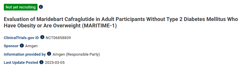 近日,全球临床试验收录网站ClinicalTrials显示,安进公司已正式启动其创新药物AMG 133的两项关键性III期临床试验——MARITIME-1与MARITIME-2,标志着AMG 133迈入III期开发的重要阶段。