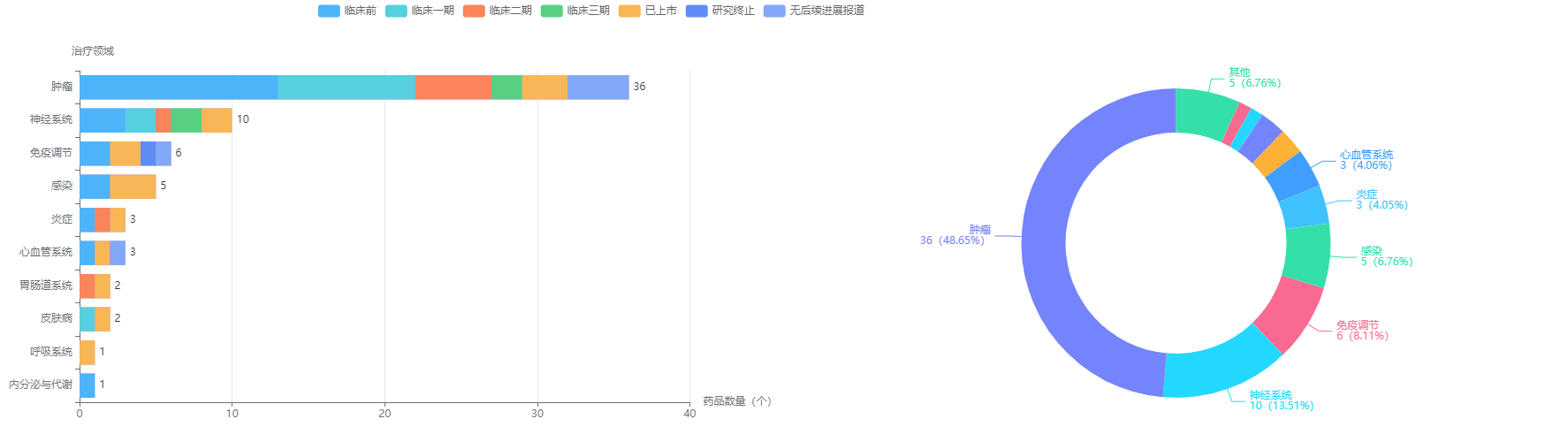 先声药业药物治疗领域TOP10