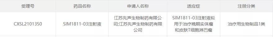 是日,先声药业自主研发的抗肿瘤1类新药SIM1811-03注射液(SIM0235)首次获批临床,拟用于治疗晚期实体瘤和皮肤T细胞淋巴瘤。据先声药业早前公告,SIM1811-03是一种免疫球蛋白G1(IgG1)型人源化抗TNFR2单克隆抗体,靶向肿瘤坏死因子2型受体(TNFR2)。
