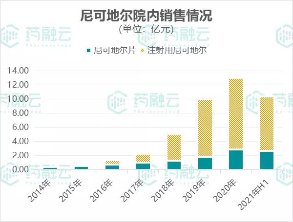 但总体来看,依然是注射用尼可地尔占据主要市场(占比超7成)。据药融云统计,2020年注射用尼可地尔院内销售额突破10亿,今年H1销售额同比增加101%,年总销售额有望突破15亿,市场潜力值得期待。目前国内仅有北京四环科宝制药获得批文,独占市场。