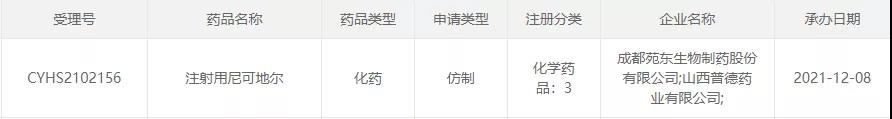 12月8日,CDE官网显示,成都苑东生物制药与山西普德药业联合报产的注射用尼可地尔获受理,目前该品种尚无企业过评,这是以新分类报产该品种的第3家企业。今年,苑东生物制药已报产8款仿制药,其中5款有望夺得首家过评。