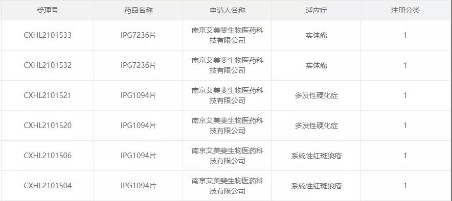 艾美斐自启动IPG1094项目以来,进展迅速。2021年8月13日获得美国FDA自身免疫病、实体肿瘤、多发性骨髓瘤临床批件。