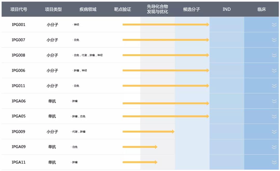目前,艾美斐拥有超过10条全球创新的研发管线,第一梯队围绕两个候选分子IPG1094与IPG7236的7个项目。除了进展较快的小分子管线,艾美斐在单抗、双抗等管线上也有原研性的前沿布局,形成第二梯队管线,并获得了相应的原创候选分子。
