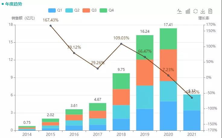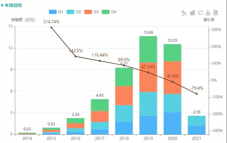 2012年12月,倍林达进入中国市场。2017 年 7 月,替格瑞洛被纳入国家医保谈判目录,随后该药得以快速放量,2018年全国医院销售额同比增长109%,2020年销售额超17亿。虽然自2019年起,便已有石药欧意、南京优科制药、扬子江、正大天晴等20余家企业陆续获批生产替格瑞洛,并有深圳信立泰药业(首家过评)、正大天晴等多家企业陆续过评,但在整个替格瑞洛市场,依然由原研阿斯利康主导,占据了94%的市场份额。