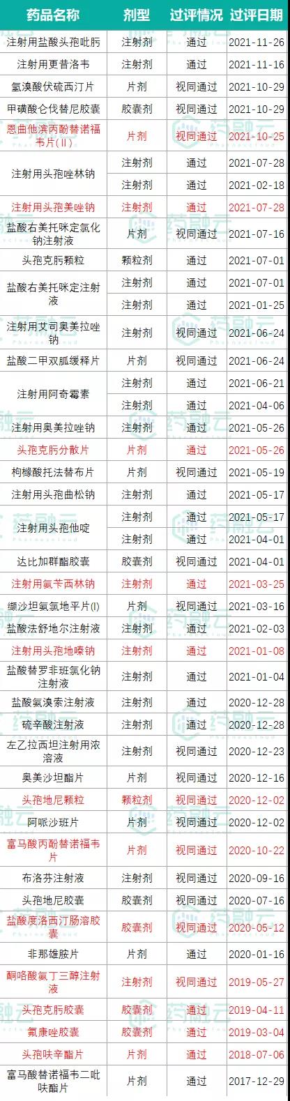 此前已过评企业