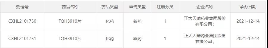 2021年正大天晴递交临床的新药概况