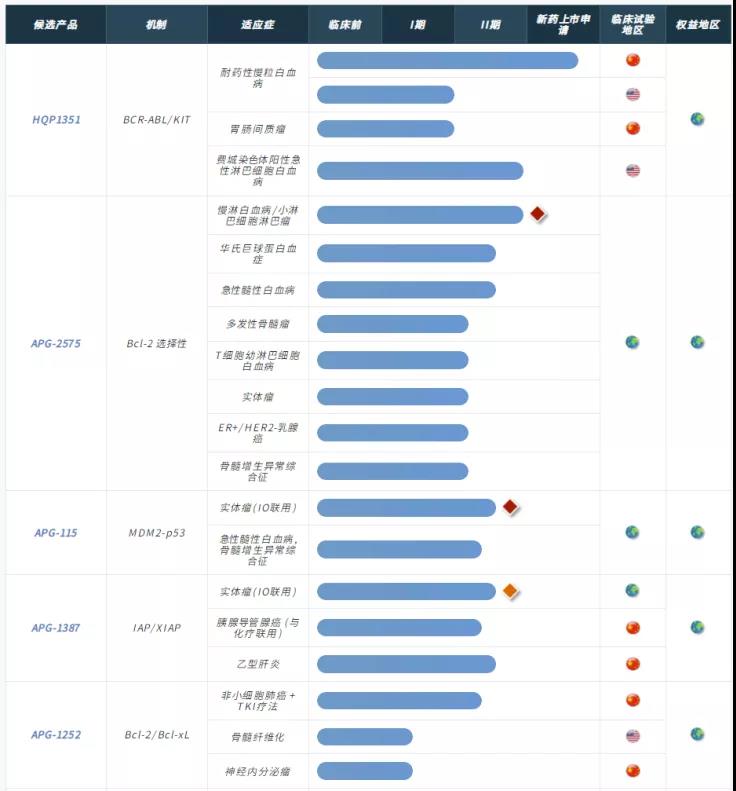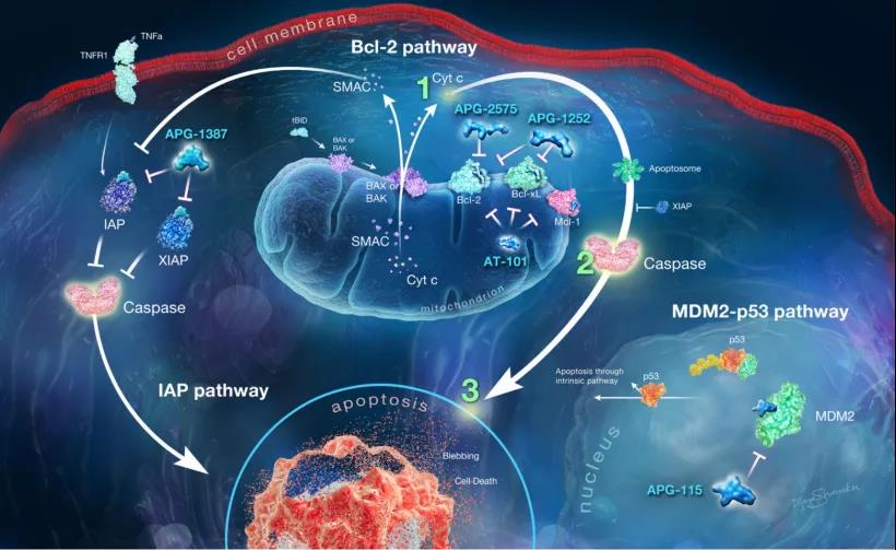 另外还有两种细胞凋亡靶点药物正处于Ib/II期临床试验阶段,即IAP抑制剂APG-1387(乙型肝炎、实体瘤)及MDM2-p53抑制剂APG-115(胃癌、急性髓系白血病、软组织肉瘤、视网膜母细胞瘤、唾液腺癌等实体瘤)。