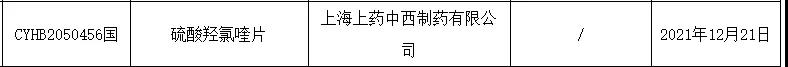 12月24日,NMPA发布一批批件信息,其中,上海上药中西制药的硫酸羟氯喹片通过一致性评价,成为该品种首家过评。