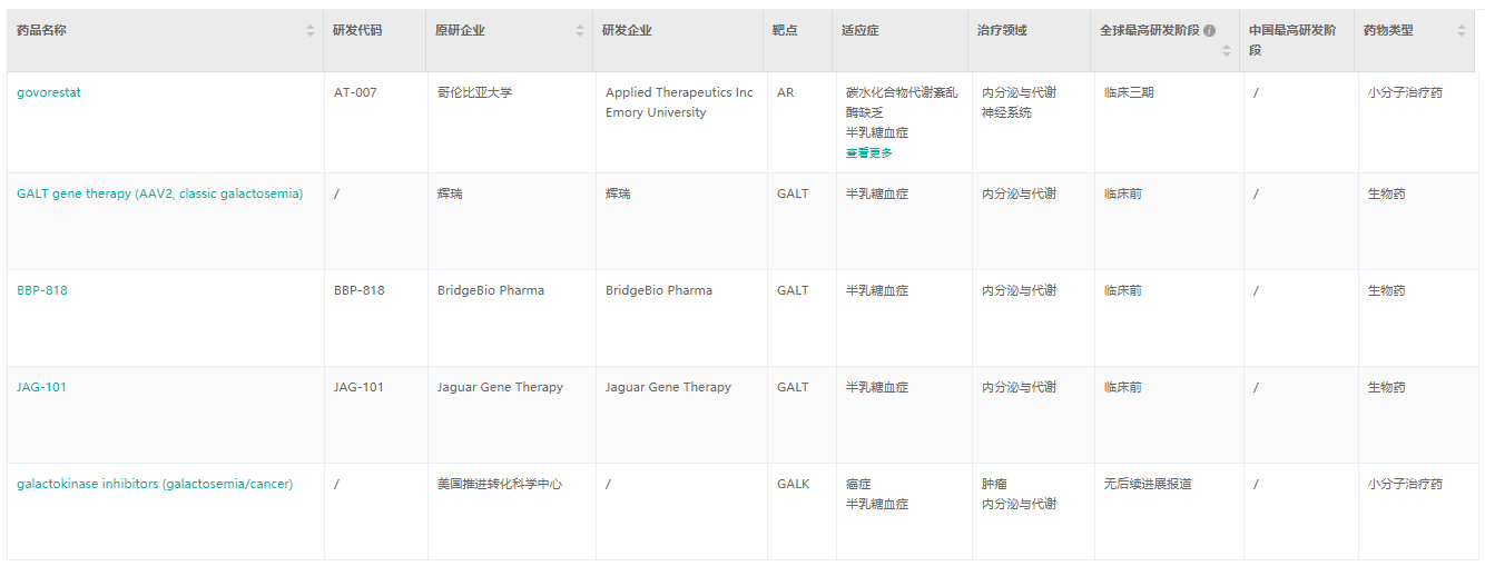 半乳糖血症适应症在研药物