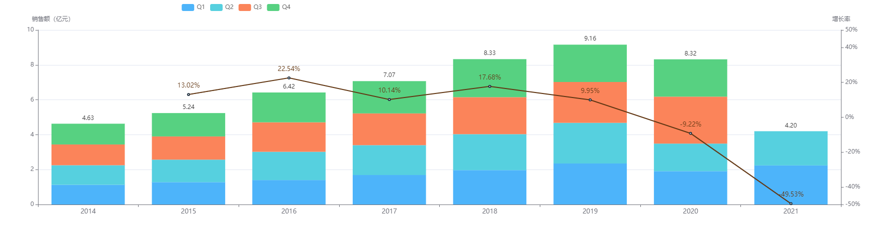 根据药融云的销售数据库来看,奥美拉唑肠溶胶囊的销售数据一直以来都比较平稳,在2014-2019年之前前销售额都在缓慢的增长,并于2019年达到峰值9.16亿元。但在2020年开始第一次走下坡路,下跌9.22%。就2021年前两个季度的销售额来看,预计全年销售额同比2020会有一定的回升,挽回下跌的趋势。