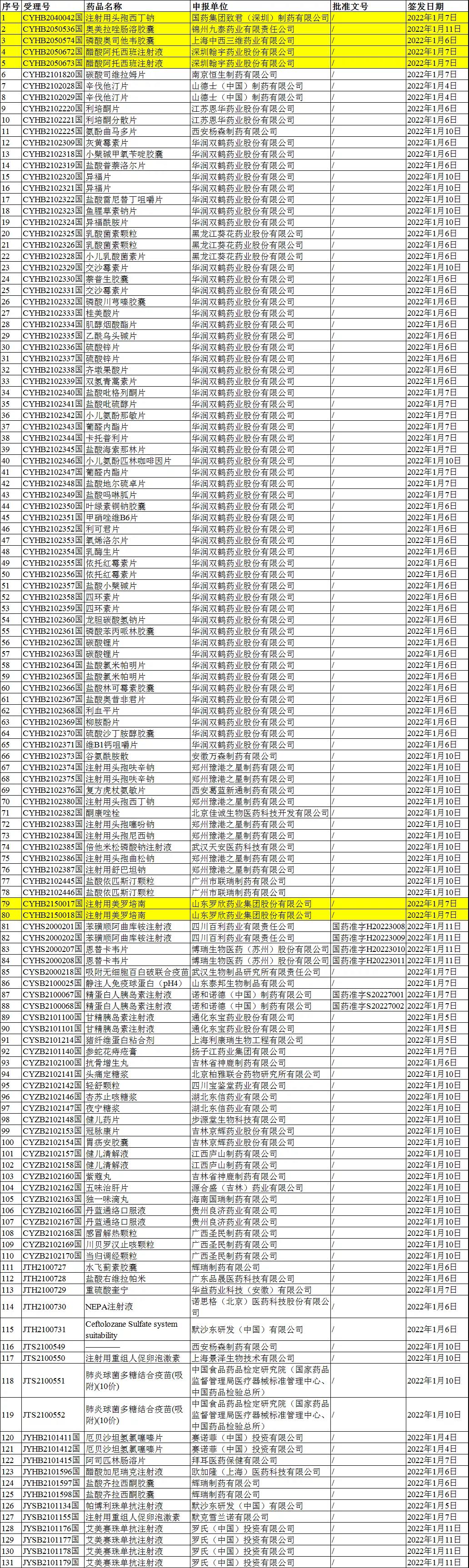 此外,另有6个上市申请受理号获批,药品分别为:苯磺酸阿曲库胺注射液(四川百力药业)、恩替卡韦片(博瑞生物医药)、精蛋白人胰岛素注射液(诺和诺德)