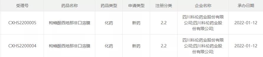 近日,根据CDE官网所显示的数据,科伦药业的枸橼酸西地那非口溶膜的上市申请在CDE承办,注册分类为2.2类,为该品种国内首家报产。这也是科伦药业在口溶膜领域申报上市的首款新药。