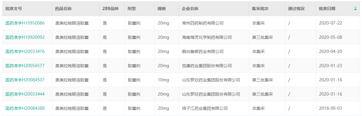 其中,值得注意的是,浙江金华康恩贝旗下的奥美拉唑肠溶胶囊的过评(表格中红色部分)。此次浙江金华康恩贝旗下奥美拉唑肠溶胶囊的过评为第八家过评,此前已有7家过评(见下表)。分别是常州四药制药、海南海灵化学制药、烟台鲁银药业、悦康药业集团、山东罗欣药业、扬子江药业集团 ,以及前几天刚过评的锦州九泰药业。《奥美拉唑肠溶胶囊,高难品种,这家企业拿下第7家过评!》