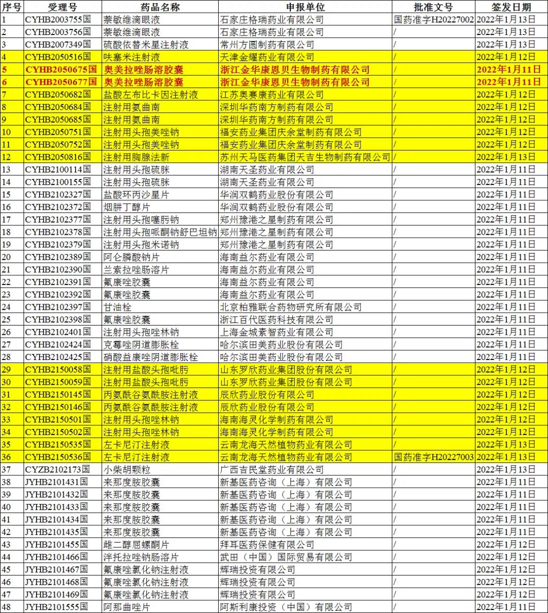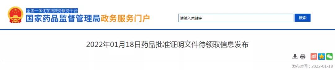 导读:2022年01月18日药品批准证明文件待领取信息发布,共48个受理号获批/过评。