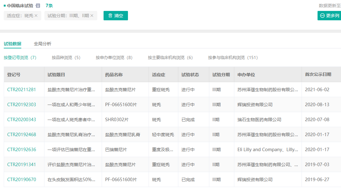 截图来源:药融云中国临床试验数据库