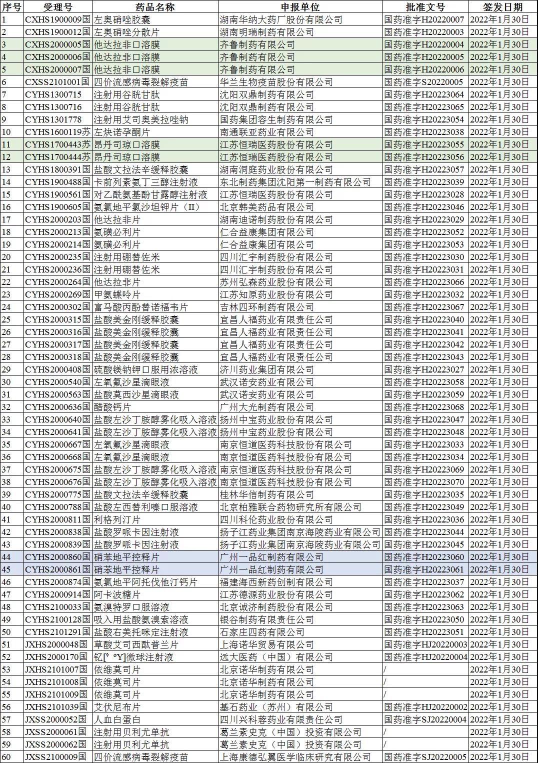 此次批件中获批的60个受理号均为上市注册申请受理号,其中国产药品受理号50个,进口药品受理号10个。