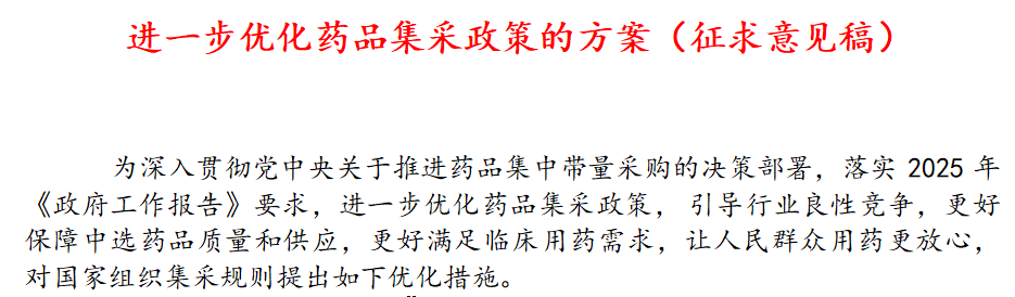 近日,一份《进一步优化药品集采政策的方案(征求意见稿)》内容在业内流传。