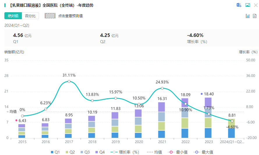 乳果糖口服溶液是一款渗透性泻药,为全国医保乙类、OTC甲类(双跨)品种,用于慢性或习惯性便秘,调节结肠的生理节律;肝性脑病用于治疗和预防肝昏迷或昏迷前状态。