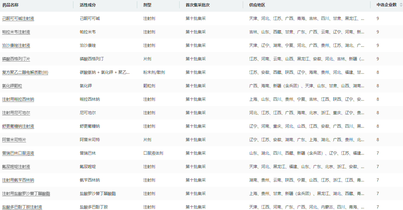 第十批国采品种详细信息查询