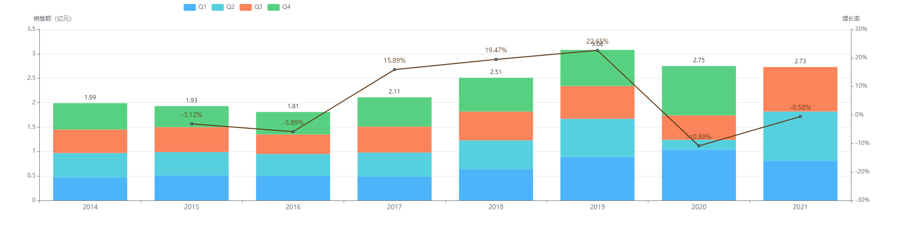 注射用人干扰素α1b近几年院内销售额趋势